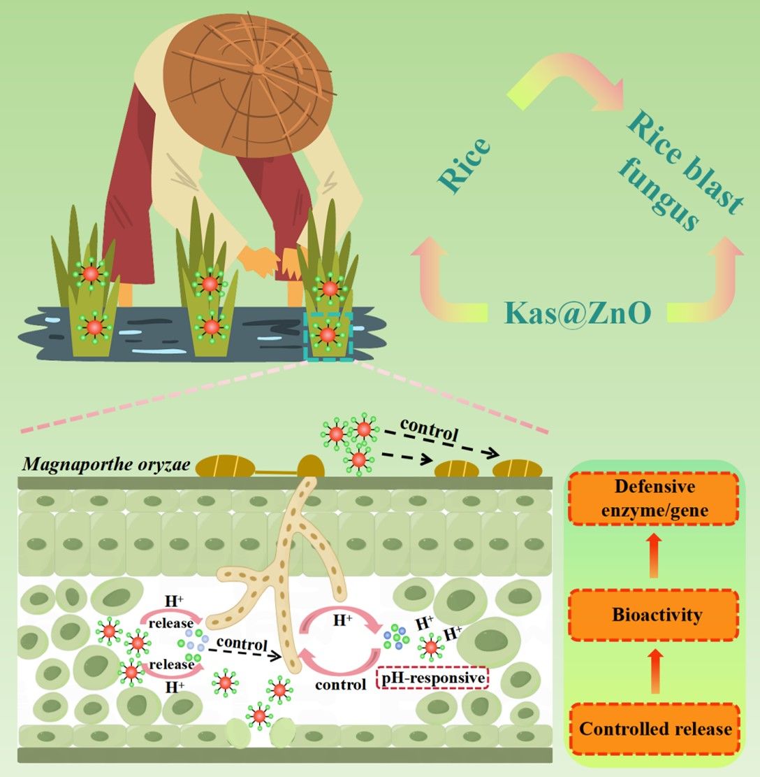 近日,bevictor伟德官网功能纳米农业应用创新学科培育团队和农公司王学贵教授课题组联合,共同研发了一种具有pH响应性能的Kas@ZnO纳米农药,并深入探讨了其在防治稻瘟病上的增效机制。该研究成果发表在国际知名期刊ACS Applied Materials & Interfaces(中科院二区,TOP期刊,IF=8.3)上,题目为“Preparation of pH-responsive Kas@ZnO quantum dots for synergistic control of rice blast and enhanced disease resistance in rice”(全文链接:https://doi.org/10.1021/acsami.4c12611)。